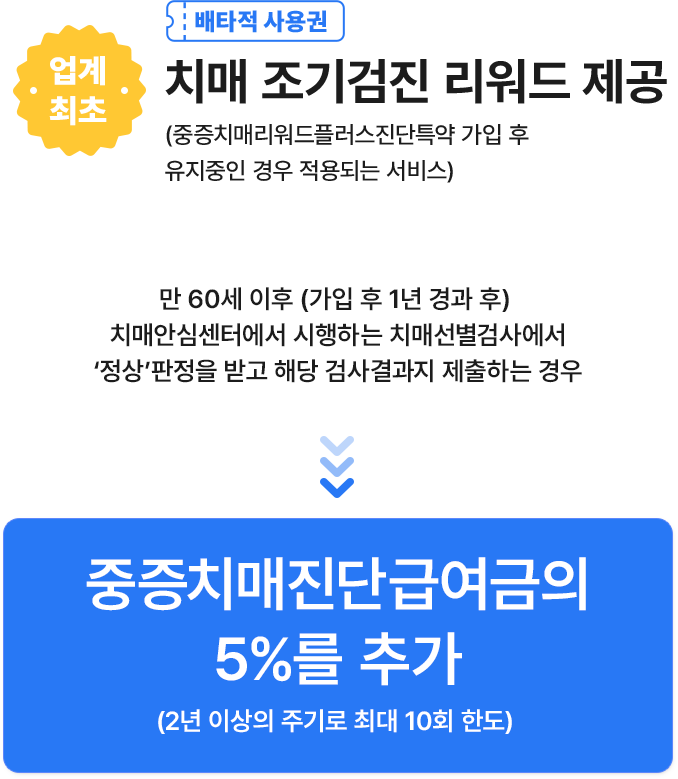 특약보험기간 중 피보험자가 중증치매산정특례대상보장개시일 이후에 “중증치매Ⅰ 산정특례대상”으로 신규 등록되는 경우 (다만, 최초 1회에 한함) | 1천만원 |